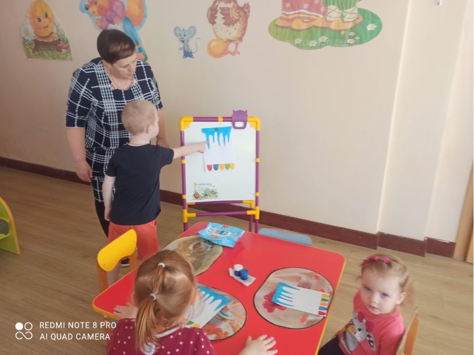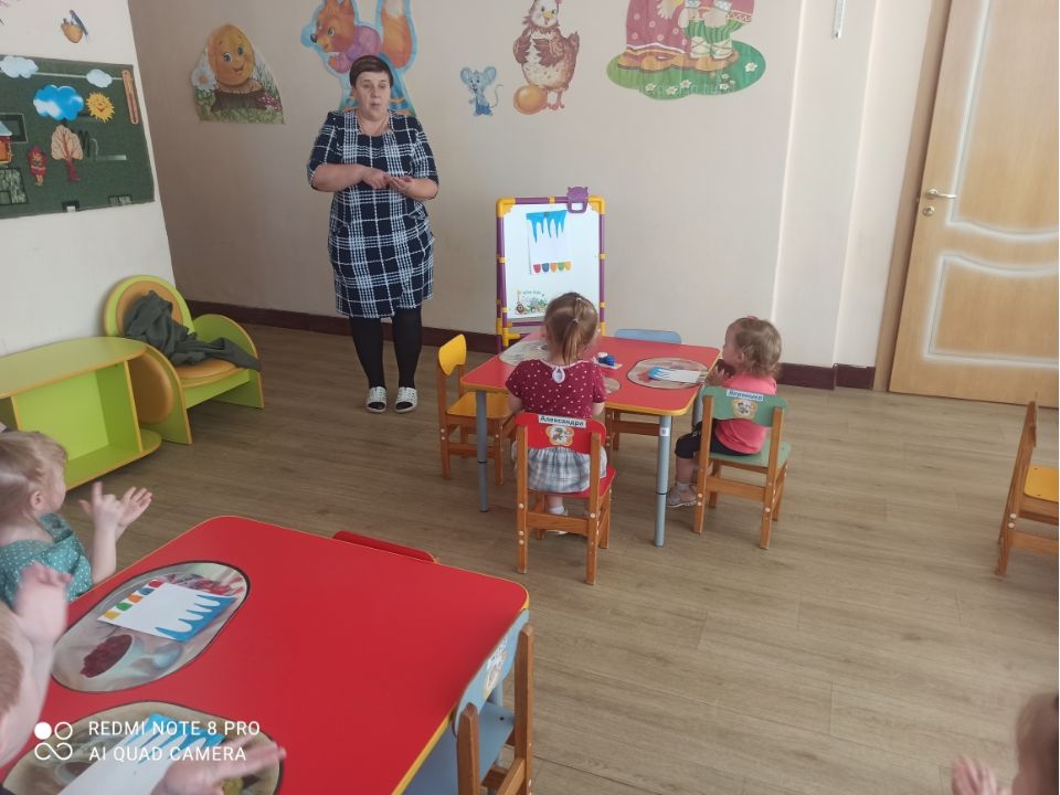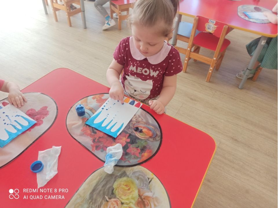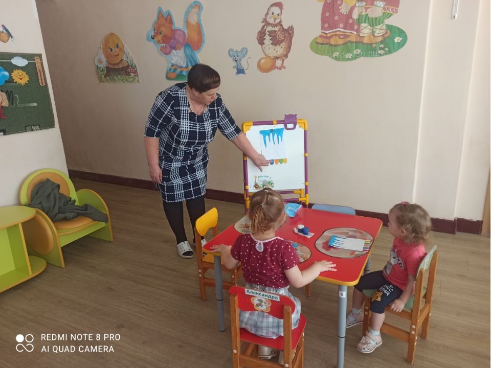В рамках тематической недели, воспитатель младшей группы Лукина В.Н. провела занятие на тему «Живая вода». Педагог применил нетрадиционную технику рисования «Рисование пальцами».