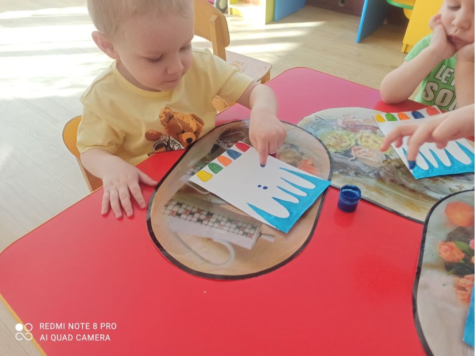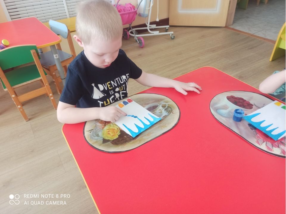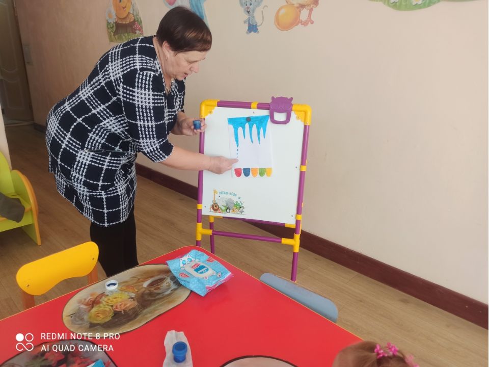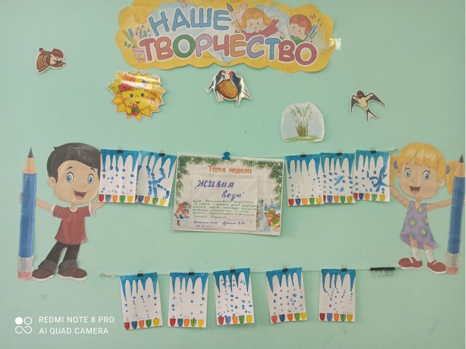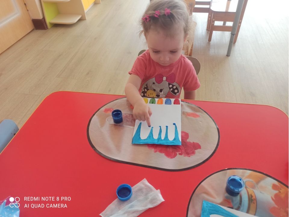 В рамках тематической недели, воспитатель младшей группы Лукина В.Н. провела занятие на тему «Живая вода». Педагог применил нетрадиционную технику рисования «Рисование пальцами».