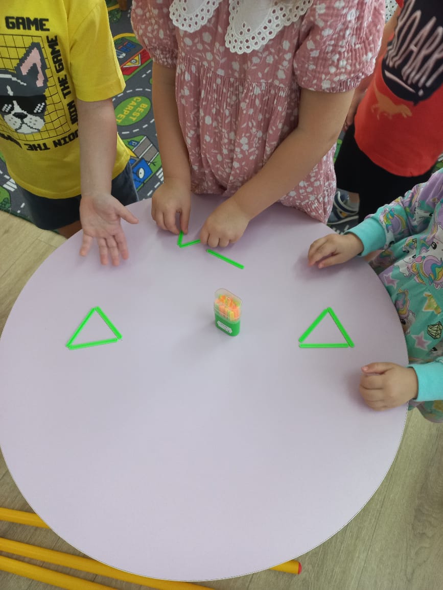 22 января в младшей группе "Сказка" прошёл "День треугольника". Вновь пришедшие познакомились малыши познакомились с фигурой, другие же закрепили знания об этой фигуре. Ребята с большим удовольствием конструировали фигуру, нашли в группе предметы похожие на треугольник а в завершении сделали аппликацию из геометрических фигур.