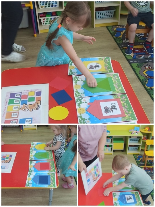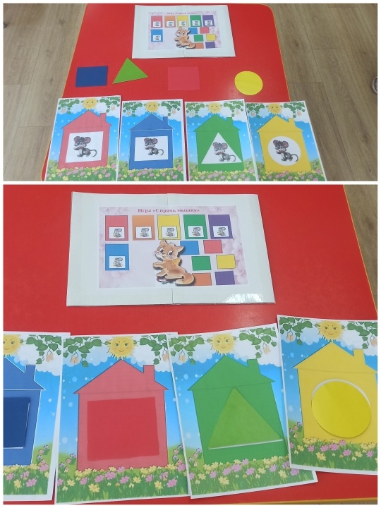 Игры в математику очень нравятся детям. В младшей группе малыши знакомились и закрепляли знания про геометрические фигуры поиграв в игру "Спрячь мышку". Ребята с интересом рассматривали домики для мышек из фигур, и закрывали окошки.