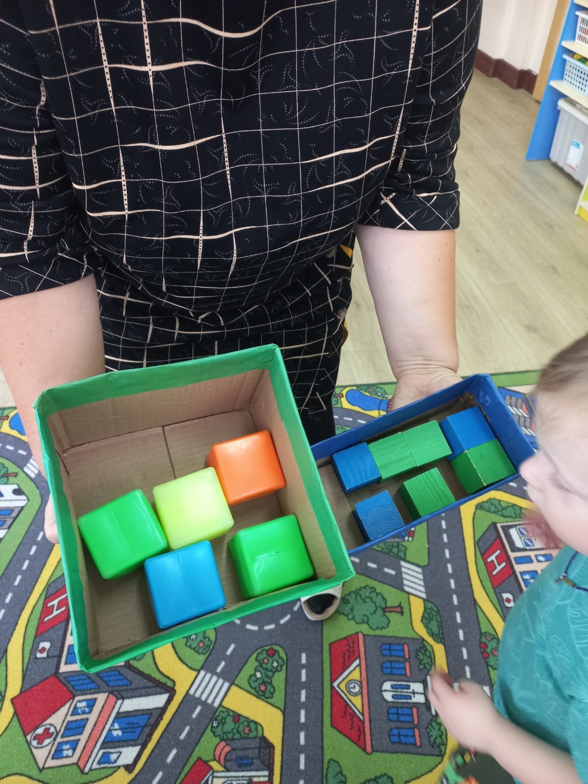 В младшей группе прошло занятие по математике на тему "Большой-маленький".Малыши учились формировать умение группировать предметы разных величин, развивать практические знания о величине предметов, память, активный словарный запас, мелкую моторику рук и зрительный контроль.