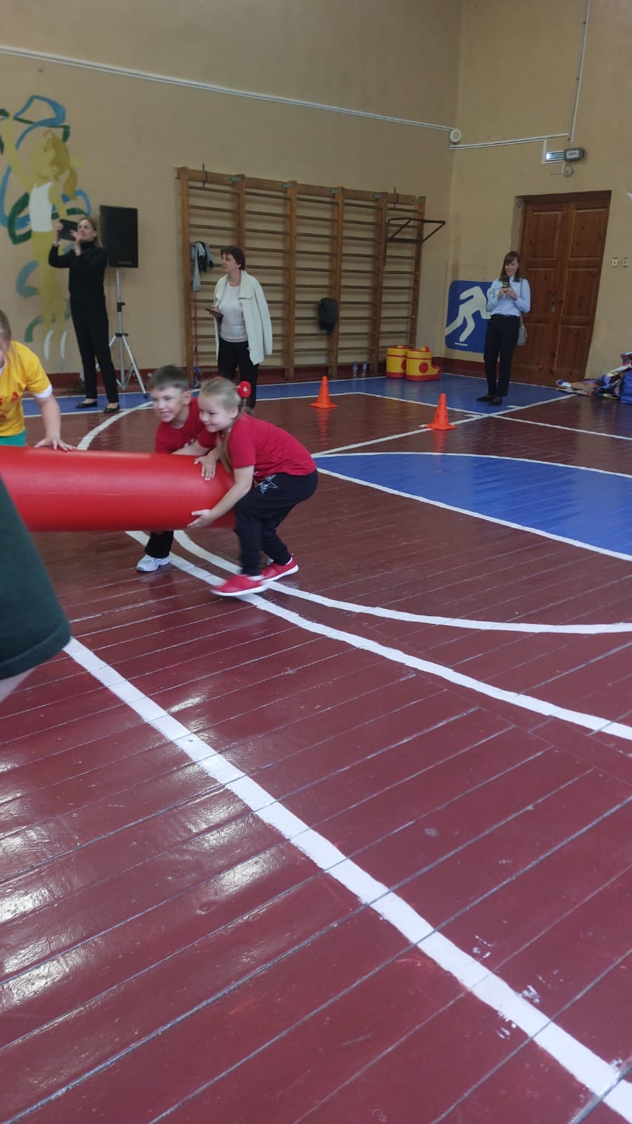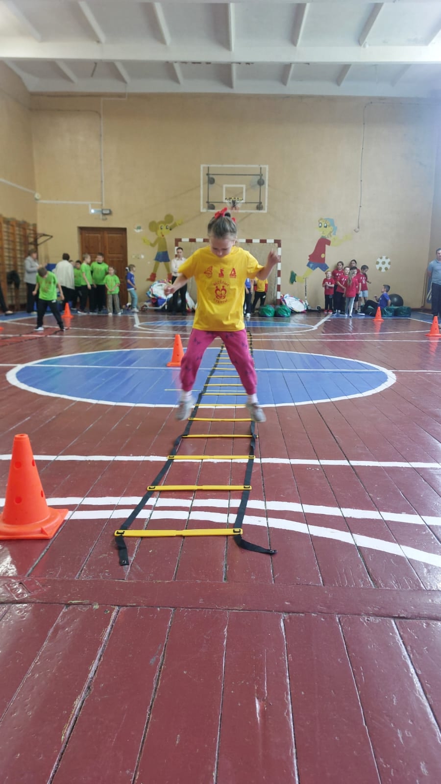 Ребята с энтузиазмом соревновались в разнообразных эстафетах: они бегали в больших ботинках вокруг конусов, прыгали на скакалке и совместно преодолевали дистанцию в слитных штанах. Каждая команда проявила настоящую дружбу и поддержку, помогая друг другу на протяжении всего мероприятия. Атмосфера была наполнена смехом и азартом, и в конце соревнований победила дружба!