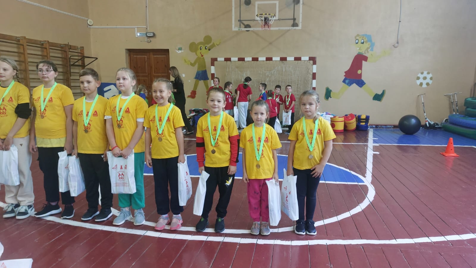 Все участники получили заслуженные награды: медали, футболки и сладкие подарки. А также сделали дружескую совместную фотографию.
